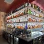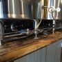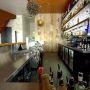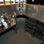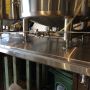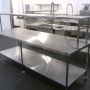 This stainless steel bench extended past the wall space to utilise the room available. It had a heated shelf for plated food.